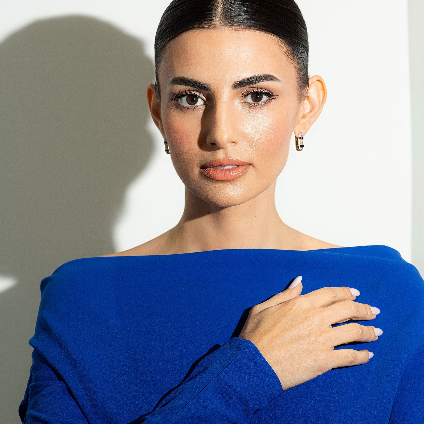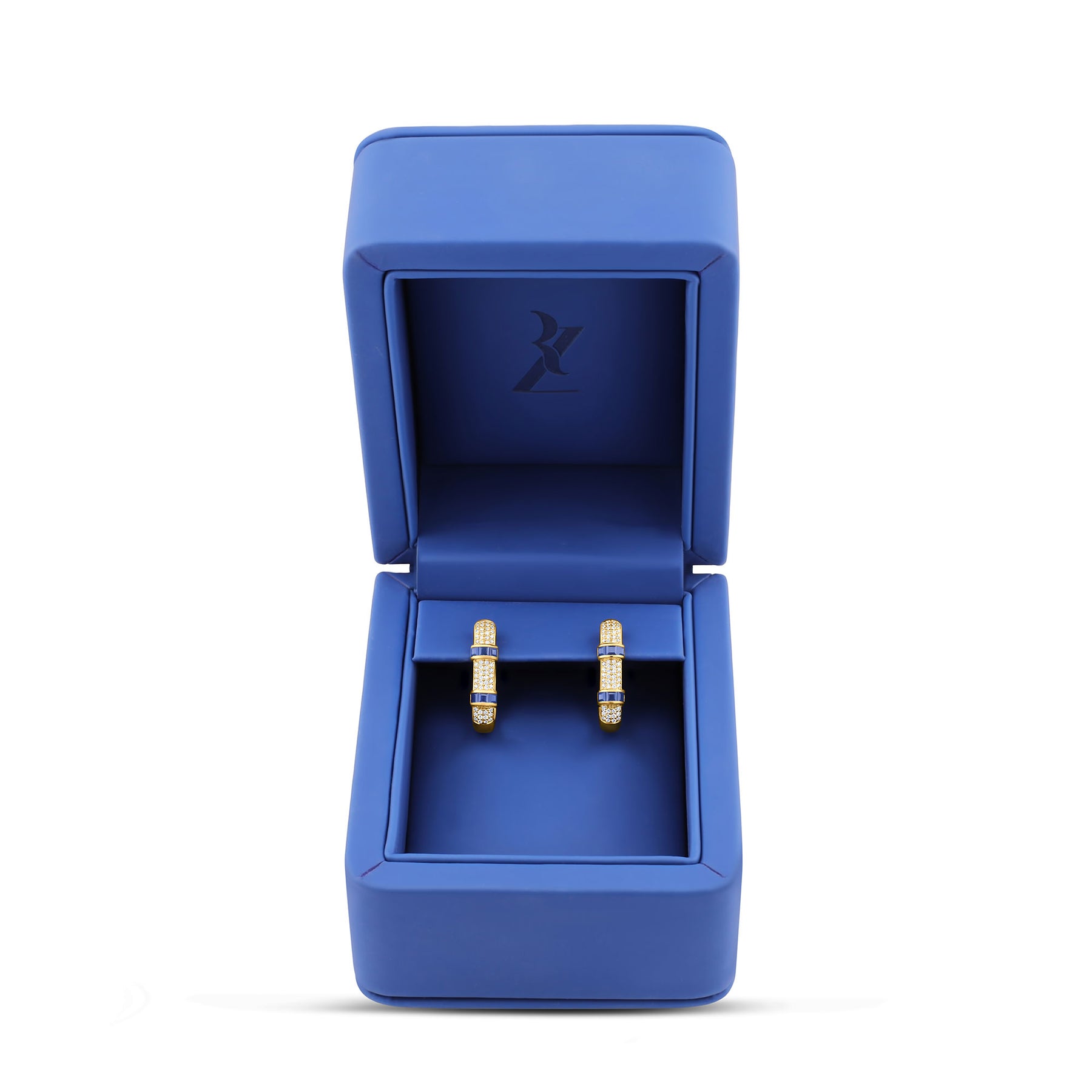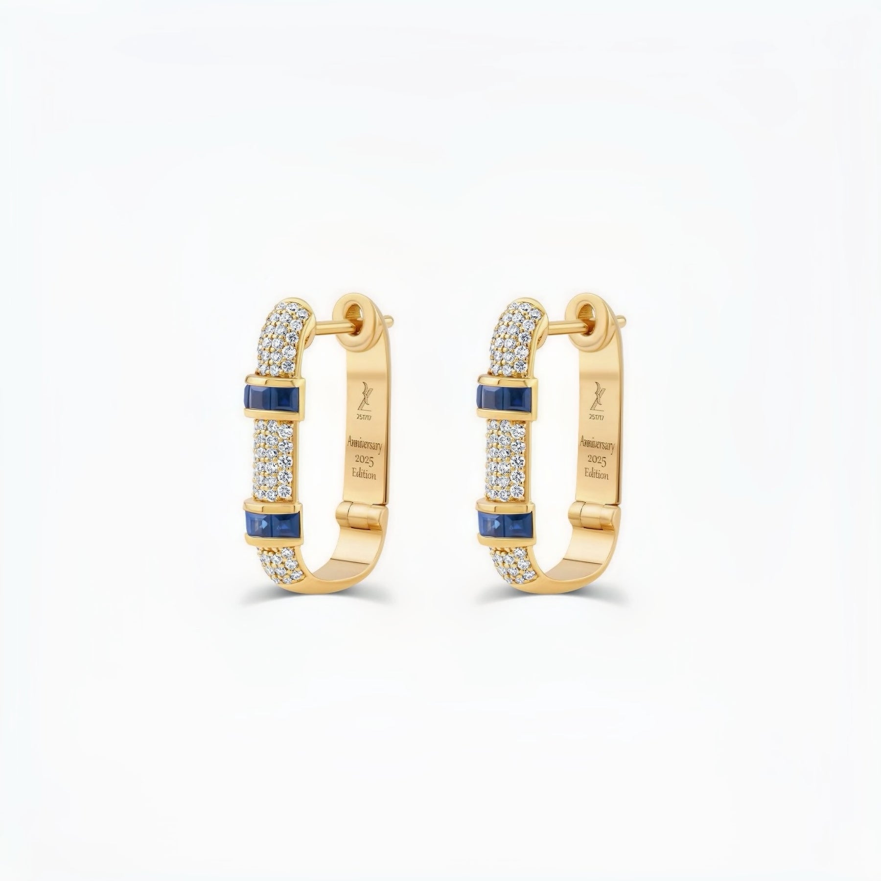 This Anniversary 2025 Edition introduces a brand-new size of the Silhouette, 20mm, a size we have never created before with 4 rows of diamonds. Somewhere between the Silhouette 17mm and Silhouette 26mm. Each earring is set with princess cut Blue Sapphires, a cut that gives that refined vintage feeling of quiet luxury and old-money elegance. Sophisticated, romantic, and timeless.