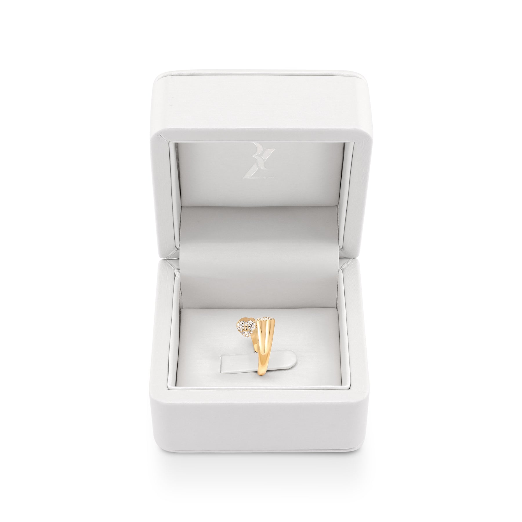 Loved The Ring is designed with two hearts coming together like a hug. The hearts are set with full pavé diamonds and finished with a signature RZ heart, making it a classic RZ creation. Refined yet bold, it is a piece to be worn daily, elegant, timeless, and extremely chic. Shining brilliantly, it sits beautifully on the ring finger, middle finger, index finger, or even as a pinky ring.