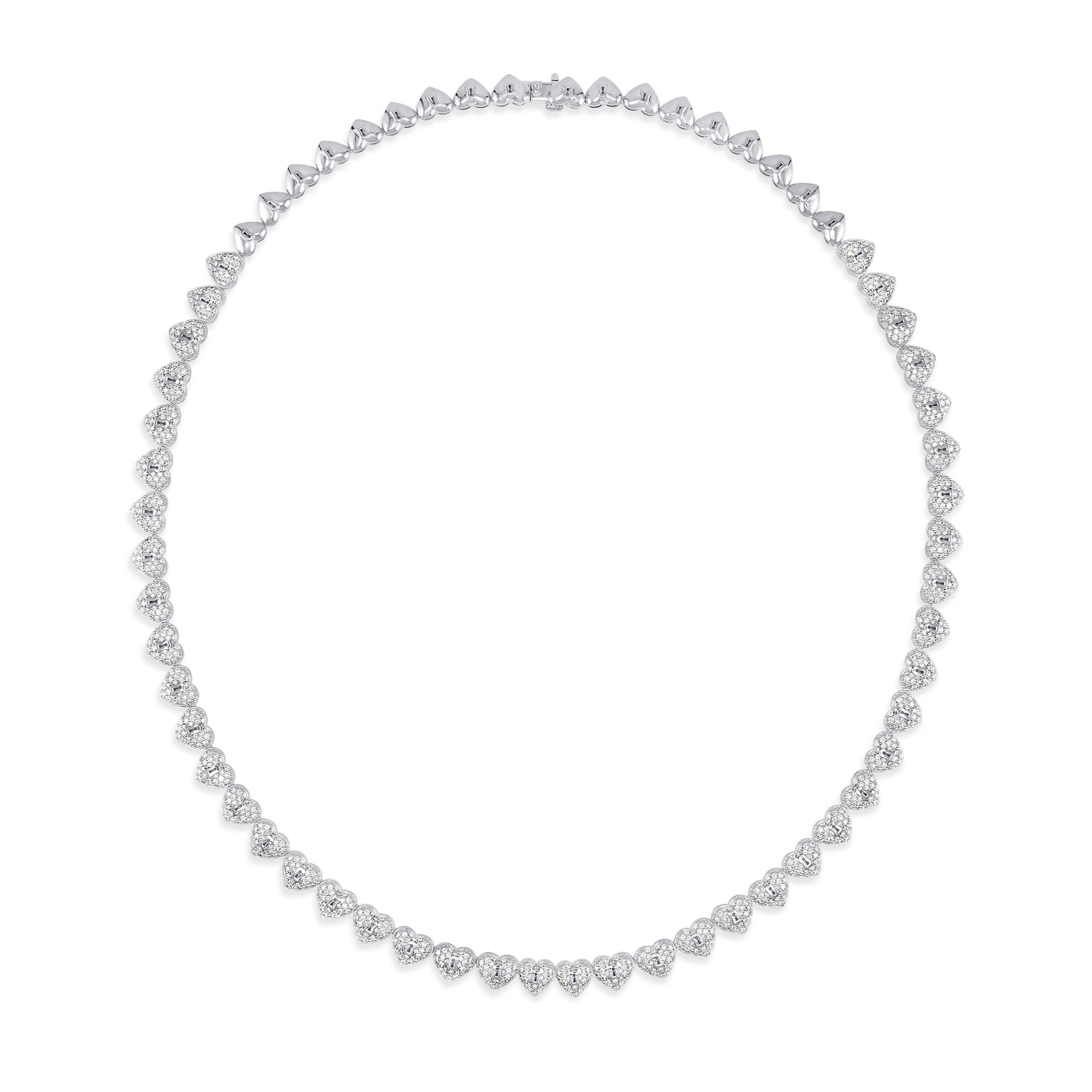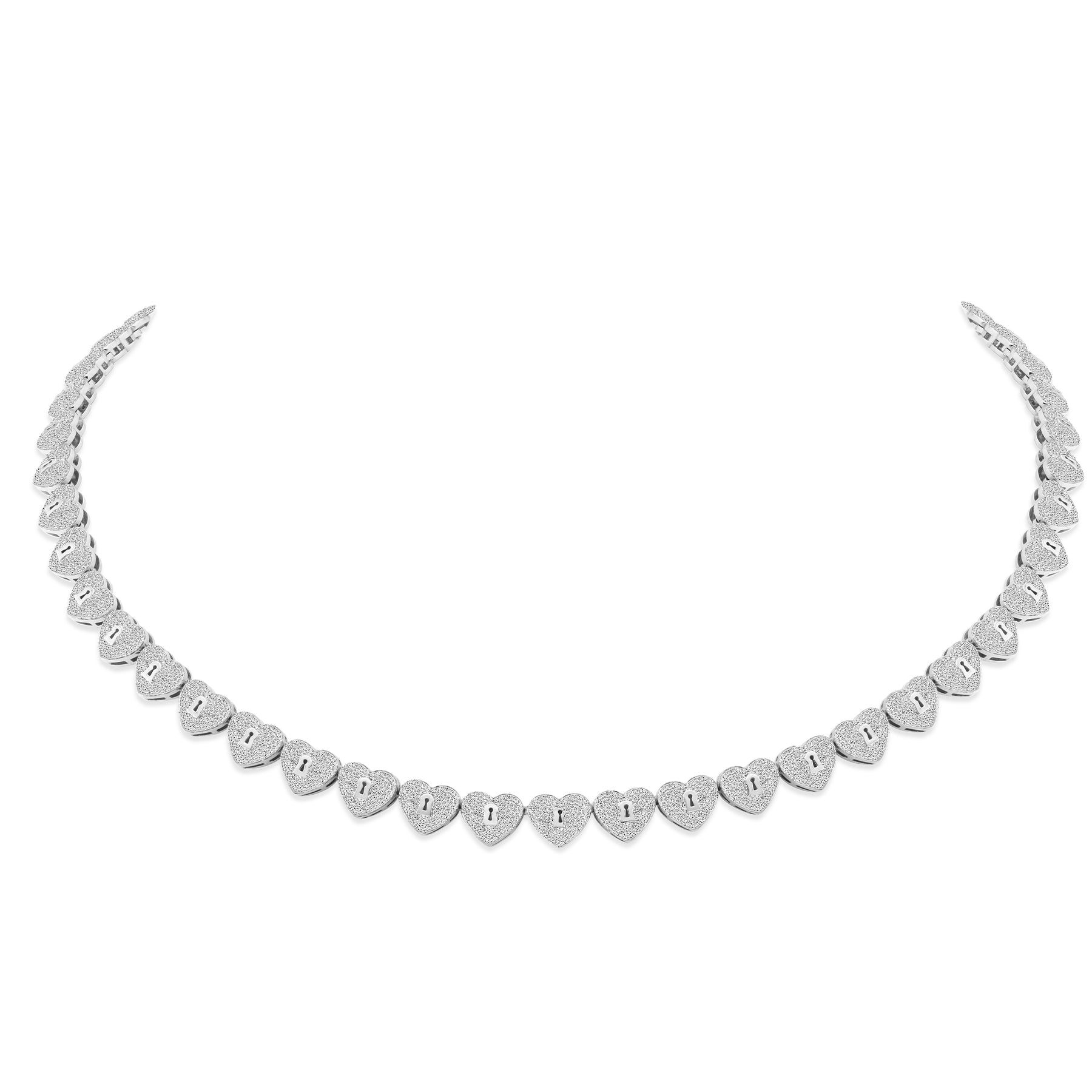 Loved Forever — The Necklace is a continuous row of pavé diamond hearts that encircle the neck in brilliance. Sitting close to the collarbone, almost like a choker yet refined enough to transcend it, it is bold yet sophisticated, powerful yet undeniably elegant.