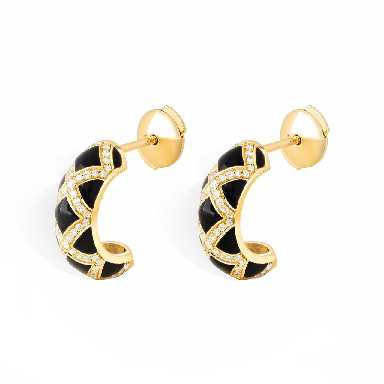 The Mini Hoops Jet Edition- Elevated in 18k yellow gold with black onyx and over 120 brilliant cut ethically sourced natural diamonds all around.