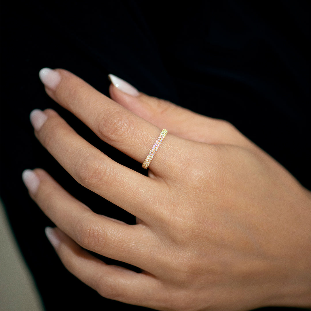 A refined dual-row diamond circlet, designed for effortless elegance. Two rows of brilliant diamonds create a subtle yet radiant shimmer, perfect for everyday wear. Versatile and timeless, it can be worn alone for a classic touch or stacked for added brilliance. A must-have piece that naturally becomes part of a woman’s signature style.