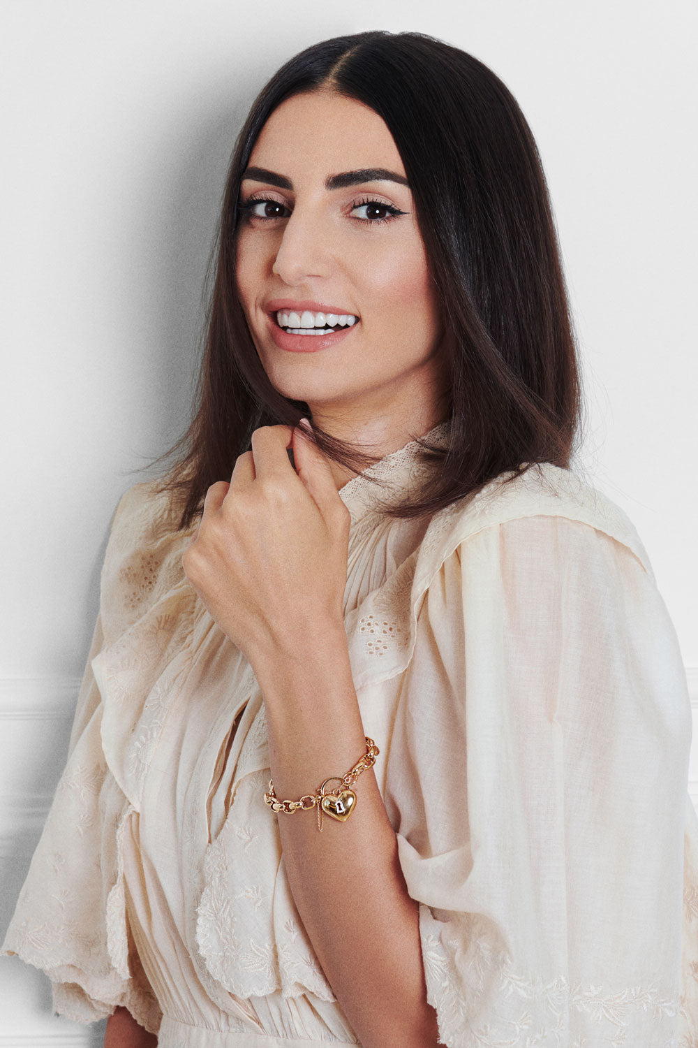 After moving to Dubai I discovered this magical place called the gold souk, I searched high and low for a heart charm to match my new “cool” persona but nothing was exactly what I wanted. So at 15 years old I decided to design one on the back of my homework book. I saved up all my weekly allowances and when I finally had enough, I got it made. I’ve had it on ever since.